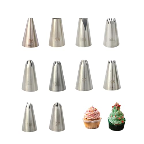 Grand Douilles à Pâtisserie,10 Pièces Inox Professionnelle Embouts de Glaçage pour Poche à Douille,Kit Patisserie DIY Douille Cannelée pour Décorer Gâteaux Cupcakes Churro Donuts Muffins