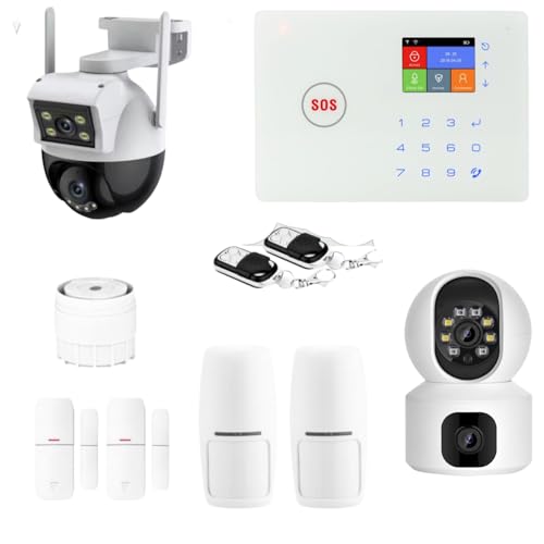 LIFEBOX Kit Alarme Maison connectée sans Fil WiFi et GSM Amazone et 2 caméras Double Objectif, lifebox, kit11, Blanc