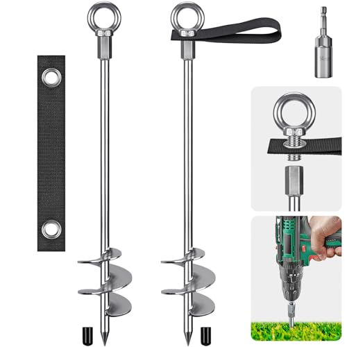 Kit de balançoire d'ancrage - Terre lourde avec vis - Attachez le trampoline avec matériel éolien élevé - Accessoires pour abris de jardin et d'extérieur
