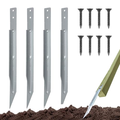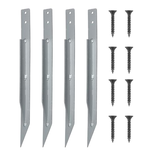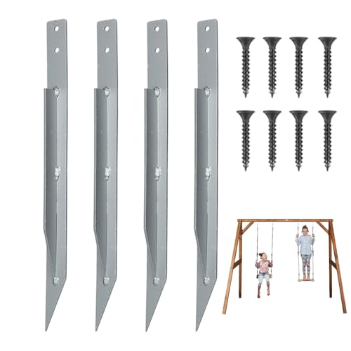 Sghtil Lot de 4 piquets de clôture - Kit d'ancrage de réparation - Kit en métal avec 4 ancrages de balançoire et vis - Accessoire de terrasse stable pour poteaux basculants, supports en bois