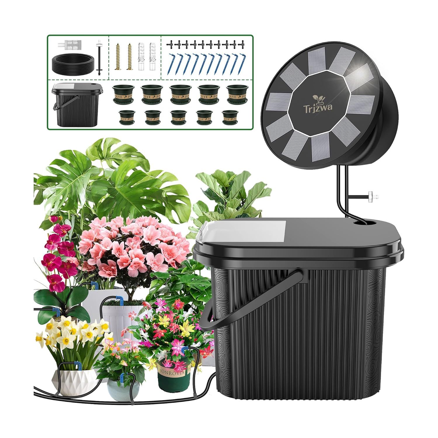 Kit Arrosage Automatique Solaire avce 9 Modes de S ynchronisation, 2025 Derniers Modèles Goutte à Goutte Programmateur Arrosage avec Seau et 10 Pots de Fleurs pour Balcon/Jardin/Serre/Pelouse
