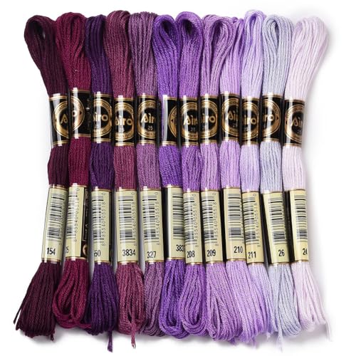 CABODYALS 12 Écheveau 96M Fil à Broder Violet Dégradé 6 Brins Polyester Kit de Fils Point de Croix Bracelet Brésilien D'amitié Colorés à Coudre Idéal pour Débutants Broderie Tissage Loisirs Créatifs