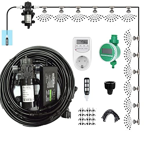 Système de refroidissement brumisateur avec pompe, Système de Brumisation, kit d'irrigation goutte à goutte automatique, Kit de brumisation avec buses pour extérieur, terrasse, jardin, serre parapluie