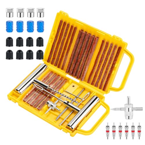 Romon Kit de Réparation de Pneu, 48Pcs Outils de réparation de Pneus Lourds et Ensembles de Réparation de Pneus Portables, pour Voitures, Motos, camions, VTT, Tracteurs, Camping-Cars, SUV