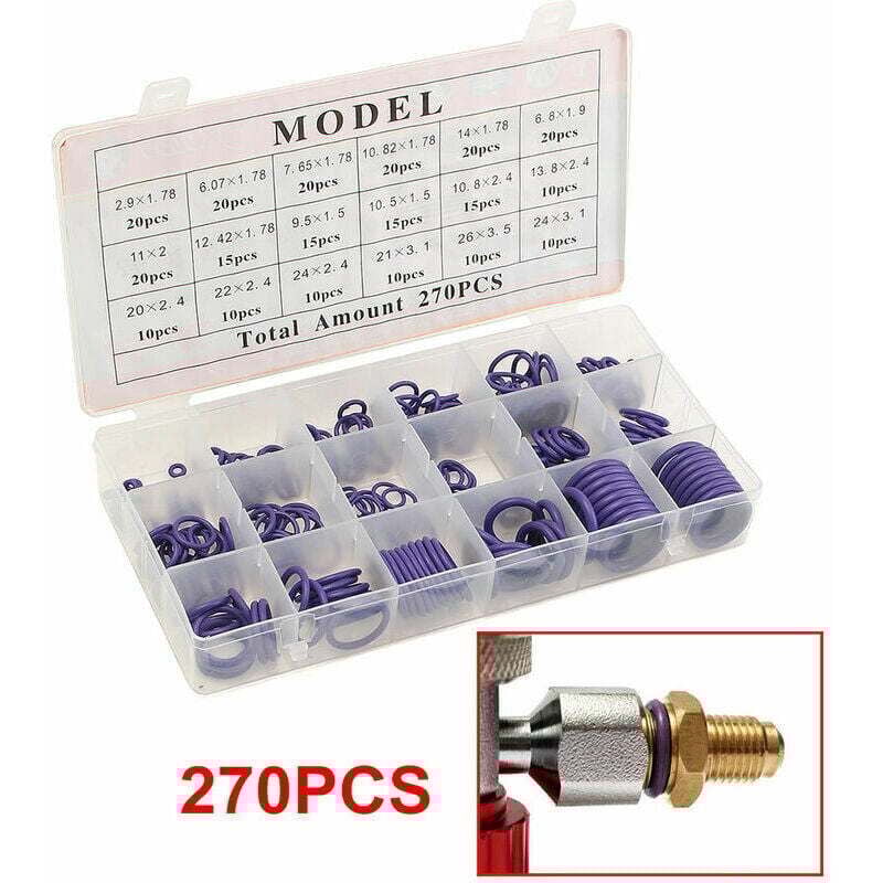 Jalleria - Caoutchouc O-Ring 270Pcs R134A Voiture Climatisation Set D'Etancheite En Caoutchouc Joint Torique Rondelle Joints Avec Plactics Box Kit,