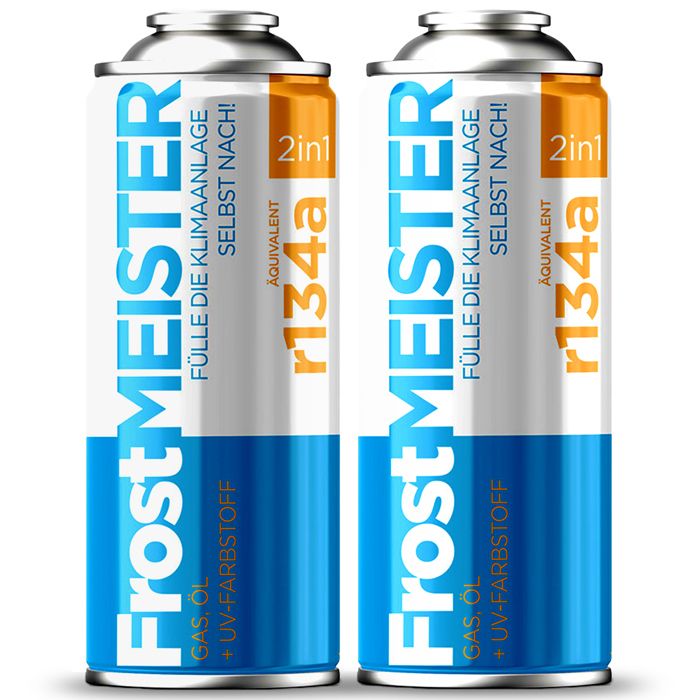Kit Recharge Climatisation Voiture R1234yf - FROSTMEISTER 2in1 - 2x235g - Gaz Réfrigérant - Bombe Recharge Clim Auto