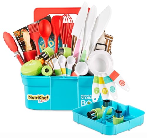 NutriChef Kit Cuisine Enfant et Pâtisserie – Set Complet avec Tablier Little Chef, Livre de Recettes, Couteaux Nylon et Ustensiles, dès 4 Ans