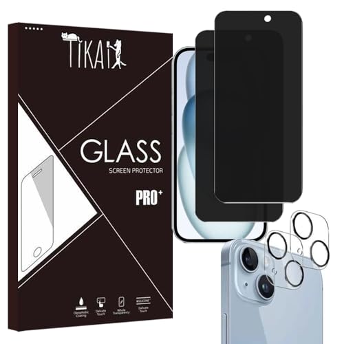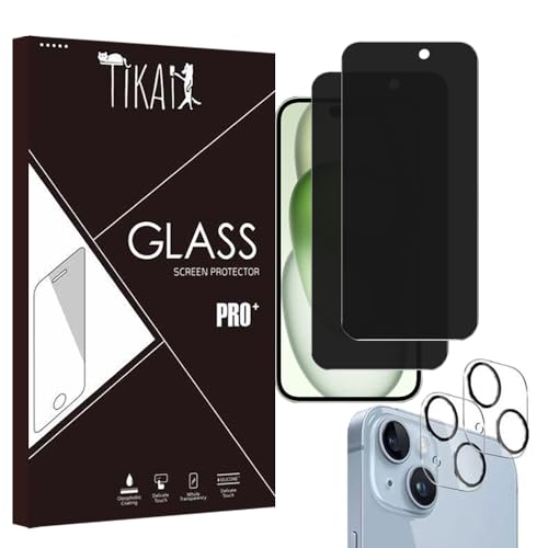 Tikai x4 Protection Écran Anti-Espion Couverture Complète pour iPhone 15 Plus 6,7 Pouces [2 Ecran + 2 Caméra], Bord Noir Film Verre Trempé + Kit d’Installation Facile, Compatible Coque, Lot 4 Verres