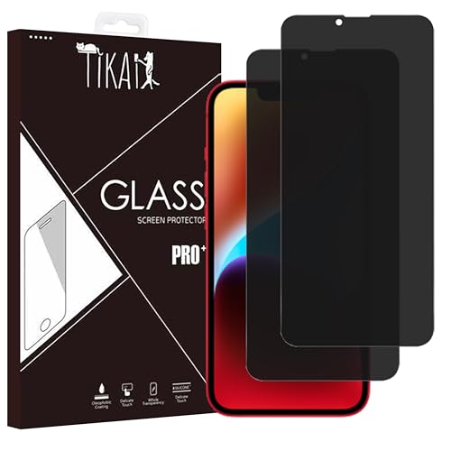 Tikai x2 Protection Écran Anti-Espion Couverture Complète pour iPhone 13 Pro Max / 14 Plus 6,7 Pouces, Bord Noir Film Verre Trempé avec Kit d’Installation Facile, Compatible Coque, Lot de 2 Verres