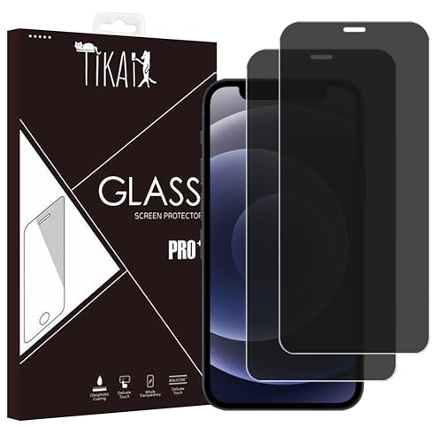 Tikai x2 Protection Écran Anti-Espion Couverture Complète pour iPhone 12 Pro Max 6,7 Pouces, Bord Noir Film Verre Trempé avec Kit d’Installation Facile, Compatible Coque, Lot de 2 Verres