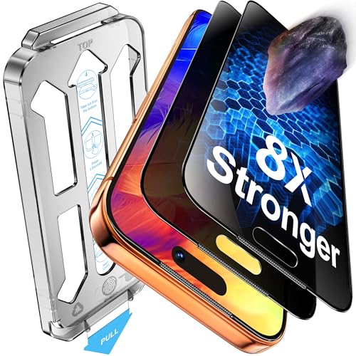 MINUUISCT 1 Pièces Chacun Verre Trempé Anti-Espion pour iPhone 15 Proavec Caméra Protecteur, Kit Outil d'Installation Facile, Film Protection Écran