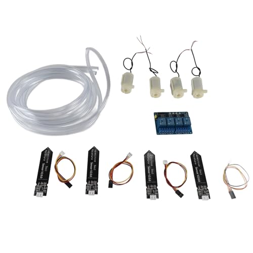 RUNCCI-YUN Kit d'arrosage Automatique pour Arduino DIY, 1pcs Sol Détection D'Humidité + 5V 4 Canal Relais Module + 1pcs Mini Micro Pompes à Eau Submersibles + 0.5M Tuyau Transparent
