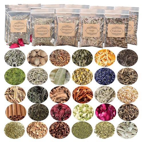 Kit d'herbes de sorcellerie, 30 herbes séchées et fleurs séchées pour fournitures d'autel de sorcière, rituels wiccans, magie païenne, herbes d'apothicaire, guérison spirituelle, fournitures de