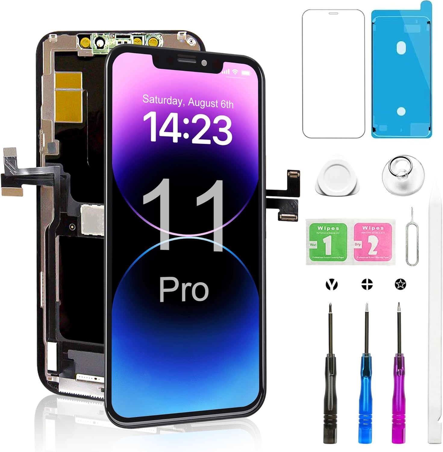 Kit Remplacement Ecran iPhone 11 Pro LCD FHD Complet 5.8 Pouces avec Outils de Reparation, Compatible Modele A2160, Noir