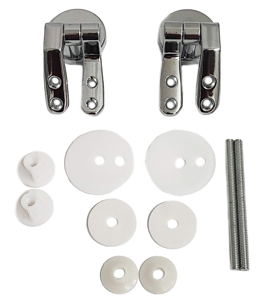 Kit de montage 2 charnières en métal chromé pour fixation abattant WC