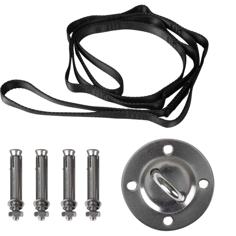 Kit de Fixation pour Fauteuil Suspendu Kit pour accrocher chaise hamac balancelle à pendre Métal Robuste Incl Corde Mousqueton Vis à Anneau Poids max