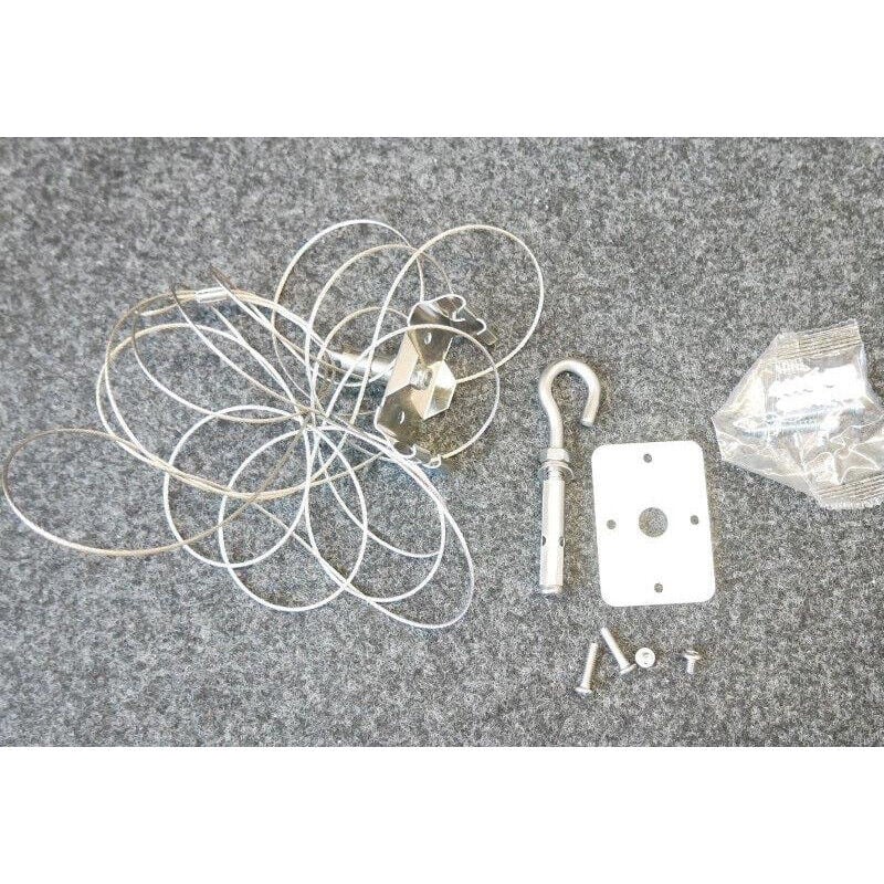 Kit de suspension avec filin acier inox longueur 3m + plaque et crochet de fixation + chevilles pour luminaire suspendu Shopline
