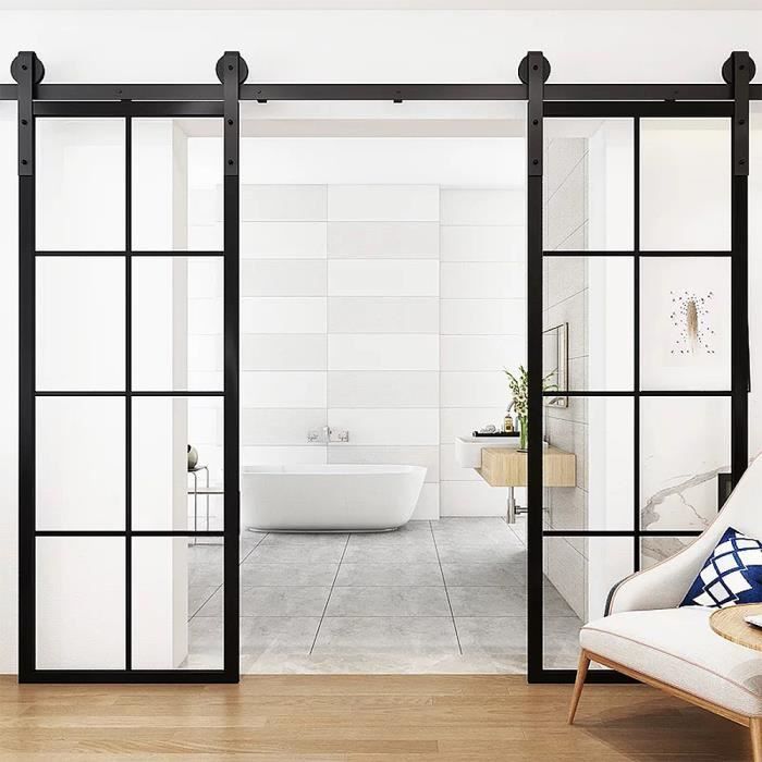 LUXS 366CM ENSEMBLE PORTE A GALANDAGE Kit de Rail pour deux Porte Coulissante