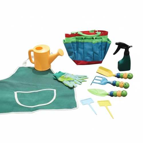 predolo 11 Pièces Kit D'outils de Jardin pour Design pour Enfants Princesse Kit de Jardinage pour Enfant Coloré pour Enfants, Filles, Extérieur, Bac à, Plage, Caterpillar 10-Pièces