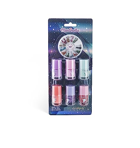 Martinelia Mini Set Manucure Enfant Galaxy - Coffret de 6 Vernis à Ongles Enfant & Différentes Paillettes - Mini Vernis à l'Eau Bleu, Rose, Violet et Orange + 2 Vernis Pailletés - Non Toxique