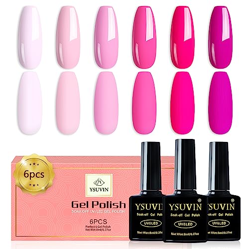 YSUVIN Vernis Semi Permanent, 6 Couleurs Neon Bébé Pêche Pâle Rose Nudee Rose Pourpre Vernis à Ongles Soak Off UV/LED Nail Art Salon French Manucure Kit, Cadeaux Beauté