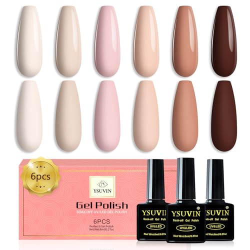 YSUVIN Vernis Semi Permanent, 6 Couleurs Naturel Nudee Beige Abricot Gel Couleur De Peau Brun Longue Durée Vernis Gel Soak Off UV Toute La Saison DIY Kit de Manucure, Cadeaux Beauté