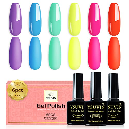 YSUVIN Vernis Semi Permanent Néon, 6 Couleurs Pastel D'été Néon Vernis à Ongles Gels Cyan Bleu Lilas Orange Rose Citron Soak Off UV Nail Art Salon Manucure Kit Cadeau Pour Vacances, Longue Durée