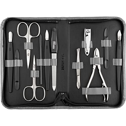 marQus kit manucure set 12 pc de Solingen Allemagne - coffret cadeau femme/homme, coupe ongle homme/femme, limes a ongles professionnelle, pince a epiler, kit ongle cuir