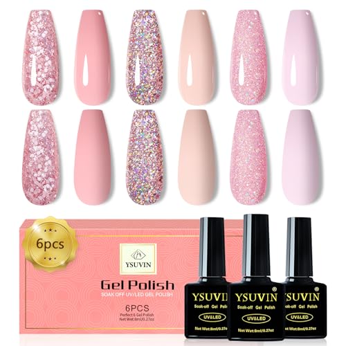 YSUVIN Vernis Semi Permanent, 6 Couleurs Pailleté Nude Rose Brillant Bébé Rose UV Vernis Gel Soak Off UV Vernis à Ongles Gel Polish Pour Femmes Kit Manucure Français Fait Maison