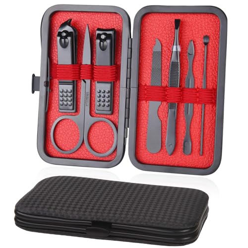 URAQT Kit Manucre Pedicure, 18pcs Ensemble de Coupe-Ongles Professionnel, Coupe-Cuticule en Acier Inoxydable, Kit de Manucure de Pédicure avec Boîte de Voyage et Maison Exquise (Noir)