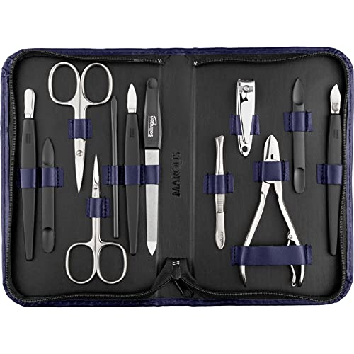 marQus Solingen Kit de manucure pour homme et femme 12 pièces Fabriqué en Allemagne avec pince à ongles, lime à ongles en verre et outils de pédicure pour ongles naturels, céramiques et peints,bleu