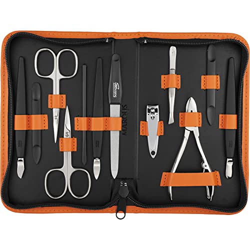 Kit manucure Solingen 12 pcs - set manucure accessoires, coupe ongle homme/femme, limes a ongles, pince à épiler, repousse cuticule, cuir