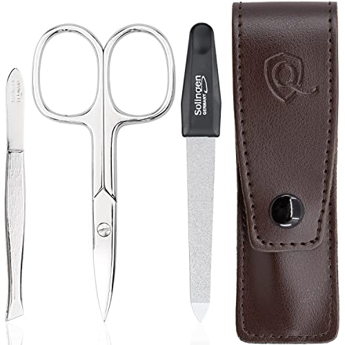 marQus kit manucure pedicure 7 pc. de Solingen - kit manucure professionnelle cuir, 2 coupe ongle, limes a ongles Solingen, pince à épiler, 2 ciseaux, lime a ongle verre