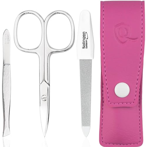 Kit manucure Solingen 12 pièces - kit ongle, coupe ongle, limes a ongles professionnelle, pince a epiler, repousse ongles, pousse cuticule, cuir véritable