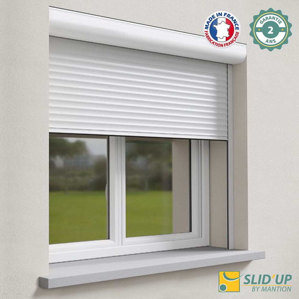 Schellenberg 39062 Kit de volet roulant pour fenêtre, système de volet roulant Mini PVC, 100 x 120 cm, blanc/gris, peut être raccourci en hauteur et largeur, avec isolation EPS et accessoires à monter