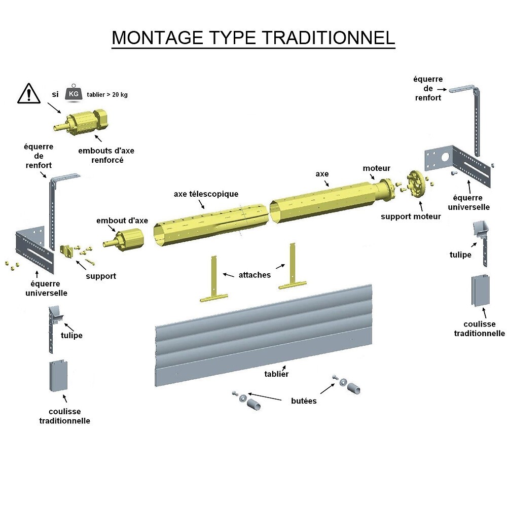 MS 1700 - Kit de motorisation volet roulant universel filaire - 10 Nm - largeur max 1.7 m - pour coffre traditionnel, rénovation, tunnel ou bloc-baie -