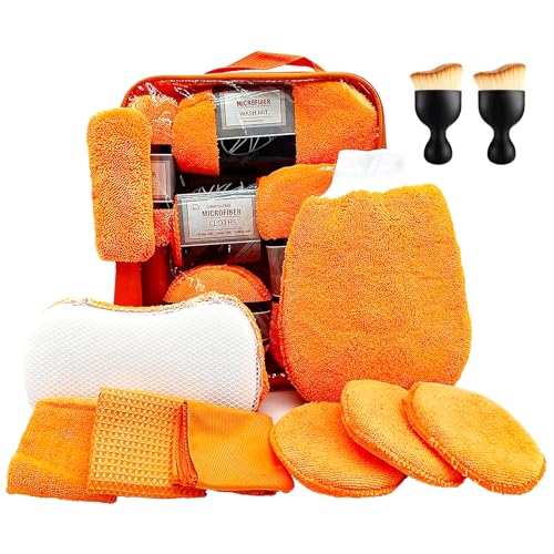 Kit de Nettoyage pour Voiture, 11 pièces avec Brosse à pneus, Chiffons de Nettoyage Multi-usages, Tampon de Polissage et éponge, Brosse Douce pour Nettoyage intérieur