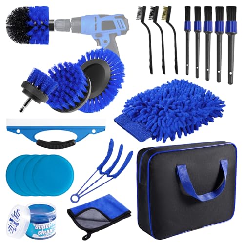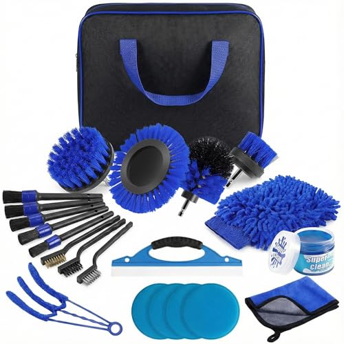 Kit Nettoyage Voiture 22 Pièces - Brosse Perceuse Nettoyage Voiture, Pinceau Detailing, Gant & Gel - Kit Complet Entretien Auto Intérieur et Extérieur pour Jantes, Tapis, Sièges et Ventilation