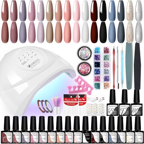 VANREESA Kit Vernis Semi Permanent Complet, 16 Couleurs Kit Ongle Gel U V Complet, 48W Lampe U V Ongles Gel, Base et Top Coat Manucure Outils Accessoires Nail Art Kit, Cadeau pour Les Femmes