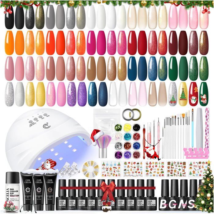 Kit Ongle Gel Uv Complet 8 Couleurs 15 Ml Extension Pour Ongles Avec 48W Lampe Manicure Vernis Semi Permanent Nail Art Outil Base