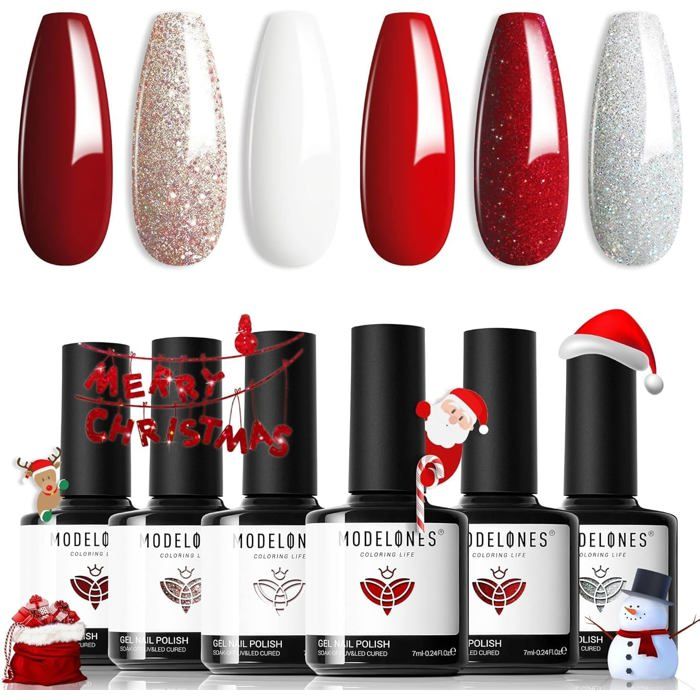 Vernis Semi Permanent Blanc Rouge Saint-Valentin Vernis À Ongles Gel Semi Permanent Kit Rouge Argent Paillettes 6 Couleurs U[V26]
