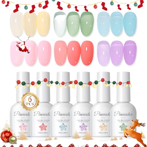 PEACECOLOR Vernis Semi Permanent Pastel, 6 Couleurs 10ml Transparent Vernis à Ongles Soak Off UV/LED Semi-permanent French Manucure Kit pour Salon DIY Home