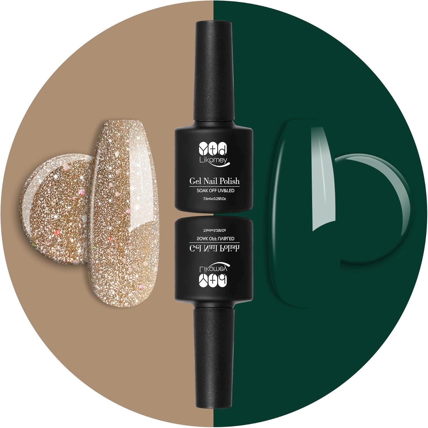 Vernis Semi Permanent,2 Couleurs Vert Émeraude Et Or Champagne Pailleté Uv Vernis À Ongles Nail Art Manucure Gel Kit,7.5ml
