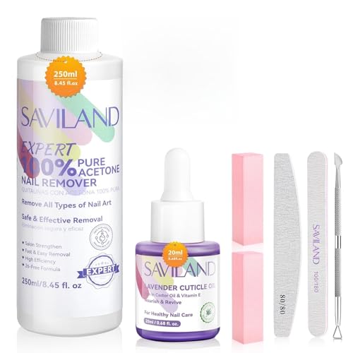 SAVILAND Kit de Dissolvant à Ongle: 250 ml Dissolvant à Ongles Gel avec Outils Complets, Enlevant Vernis Semi Permanent, Compatible avec l'Huile pour Cuticule