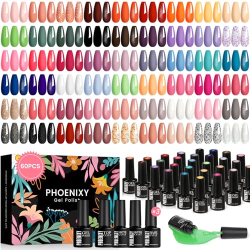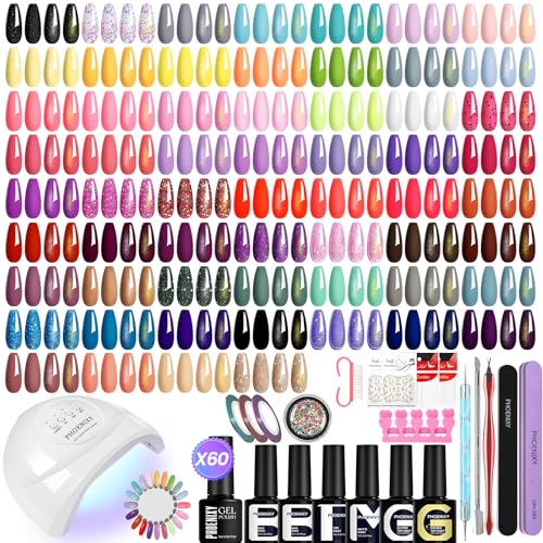Phoenixy Kit Ongle Gel UV Complet, 60 Couleurs Vernis Semi Permanent avec 48W Lampe UV Ongles Gel Base de Pailleté Glossy Matte Top Coat et Décorations et Accessoires kit manucure pour les Femmes