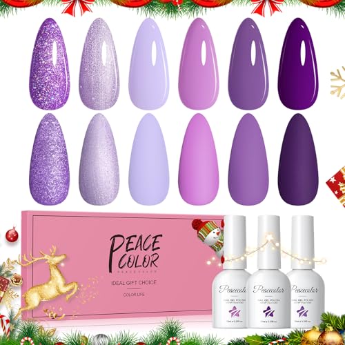PEACECOLOR Vernis Gel UV Semi Permanent, 6pcs Pourpre Set Vernis à Ongles Semi Permanent UV/LED Gel Nail Polish Lot Vernis Semi Permanent Nail Art
