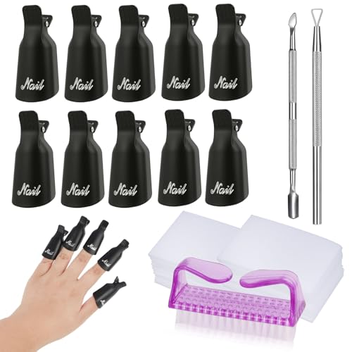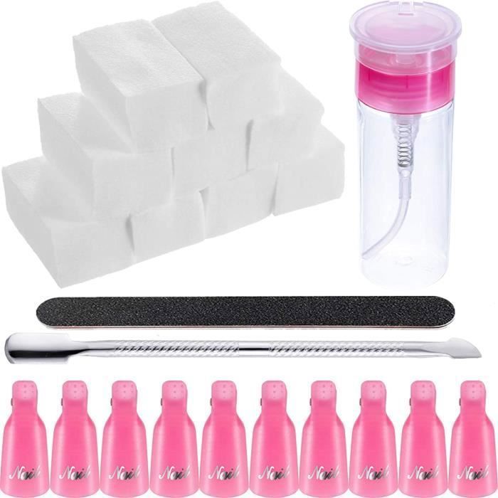 Kit pour Retrait Vernis Semi Permanent - 10 Pinces Doigts Vernis + Grattoir + Poussoir Cuticules + 100x Cotons + Brosse Ongles, Pince Vernis Pour Dépôt Ongle Semi Permanent, Salon et Maison