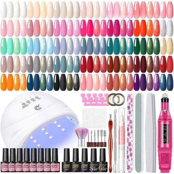 PEACECOLOR Kit Ongle Gel UV Complet avec Lampe UV Ponceuse pour Ongles, 35+5 Vernis Semi Permanent avec Base Top Coat Brillant Mat et Pailleté Nail Art Kit Manucure pour Débutant Femmes Cadeau