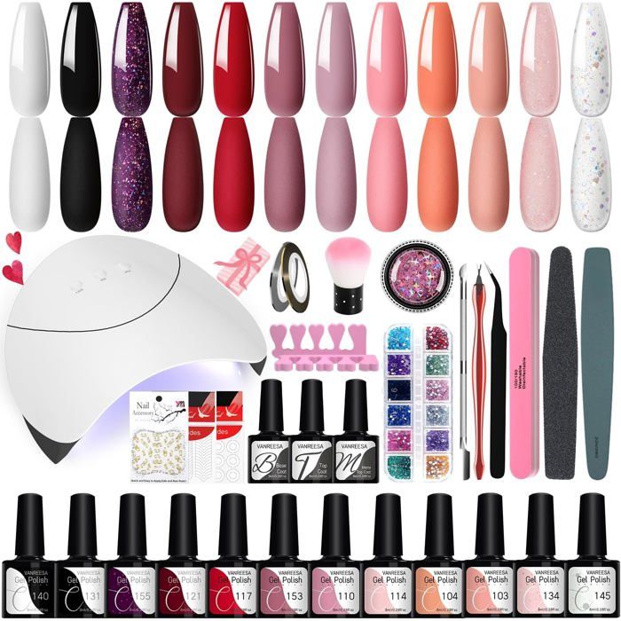 VANREESA Kit Vernis Semi Permanent Complet, 16 Couleurs Vernis Gel U V Semi Permanent avec Lampe à Ongles 48W U V LED et Décoration et Outils pour les Ongles, Cadeau pour les Femmes