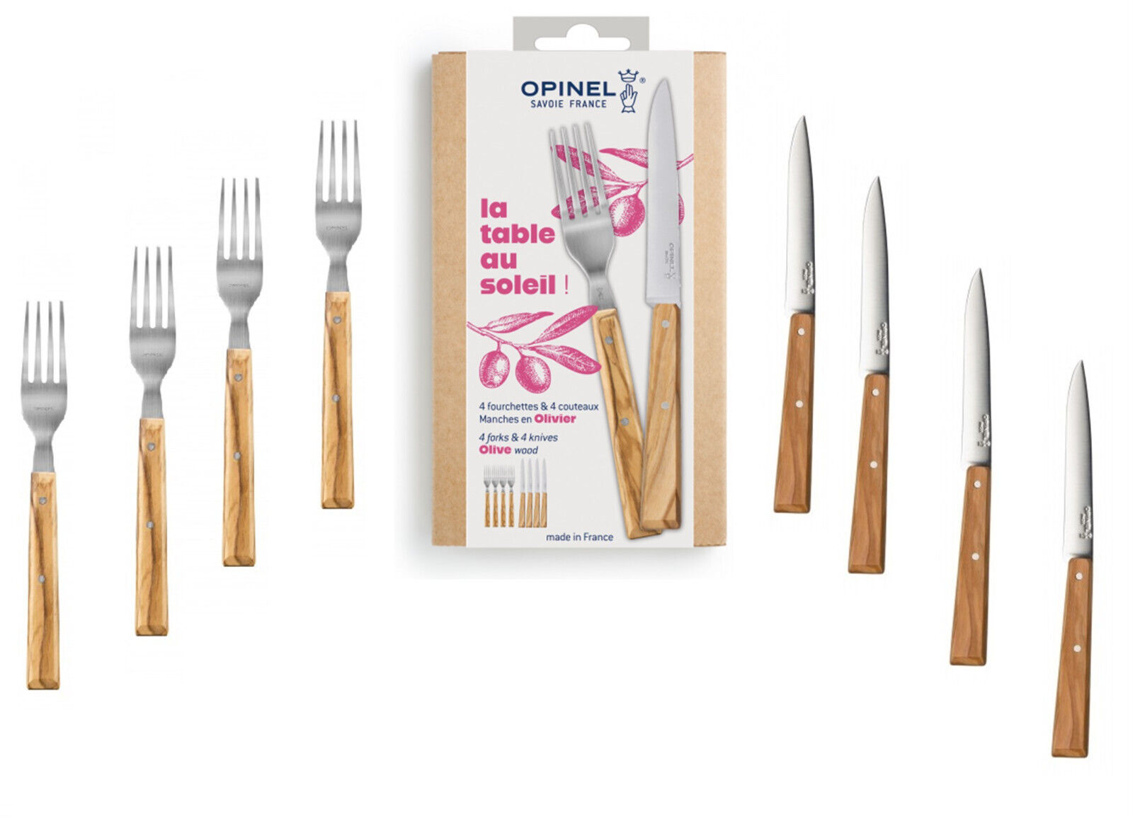 Opinel : La Table Au Solei : Set 4 Fourchettes + 4 Couteaux Steak Poignée
